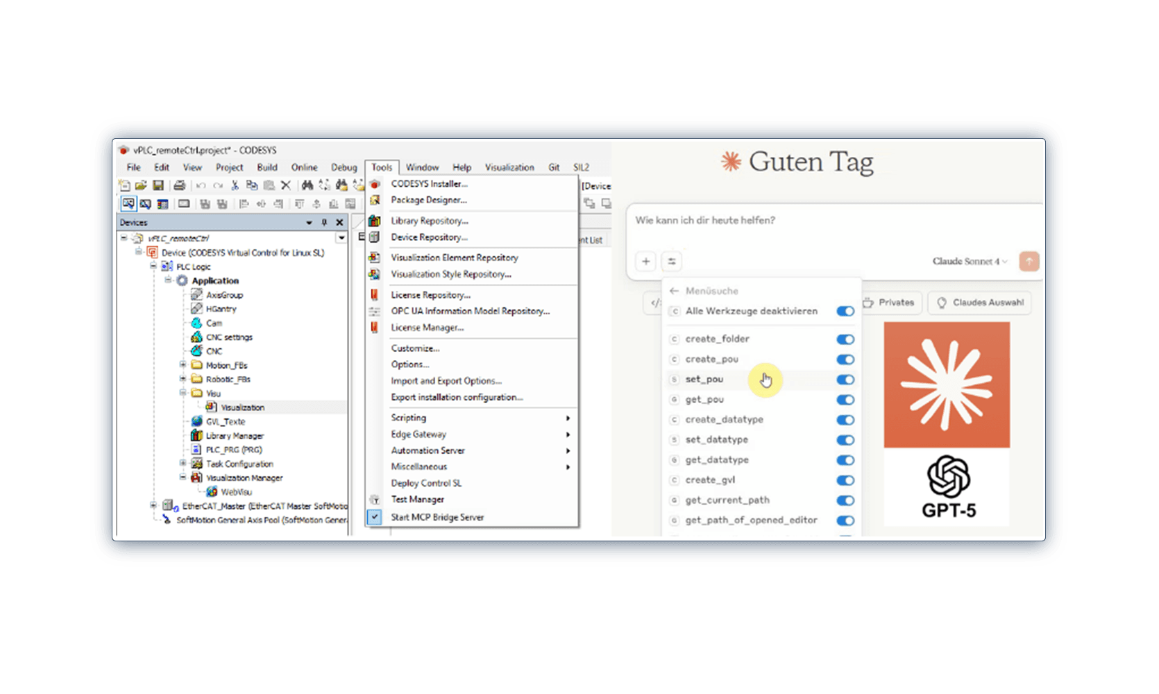 - Interfaccia integrata con gli LLM nel sistema di sviluppo CODESYS: