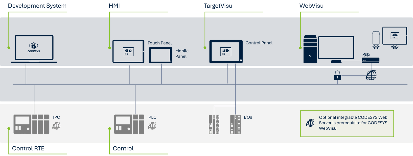 Se integrate CODESYS nei sistemi o lo utilizzate nella costruzione di macchine o impianti, con CODESYS Visualisation avete a disposizione le seguenti opzioni: